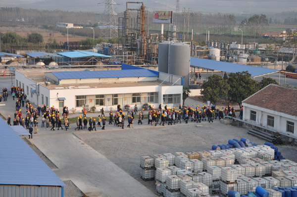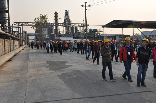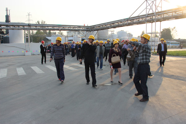 2013年第33屆水處理年會,在山東棗莊開元鳳鳴山莊召開,會議第一天,全國300多名水處理專家和同行,參觀山東泰和科技股份有限公司,并在泰和的倉儲立體庫門前完成了本次年會的大合照。所有代表參觀了泰和工廠,泰和經過這么多年的飛速發展,現在過萬噸成套設備有年產2萬噸60%HEDP及聯產1.5萬噸乙酰氯裝置1套,年產2.5萬噸ATMP生產裝置1套,年產1萬噸1227裝置2套。